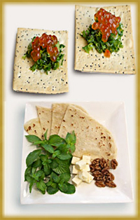 Friske krydderurter: persille, radiser mynte og forårsløg, serveres med feta og brød