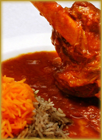 Marinerede små kyllingestykker, stegt og tilberedt i safransauce. Serveres med safranris.